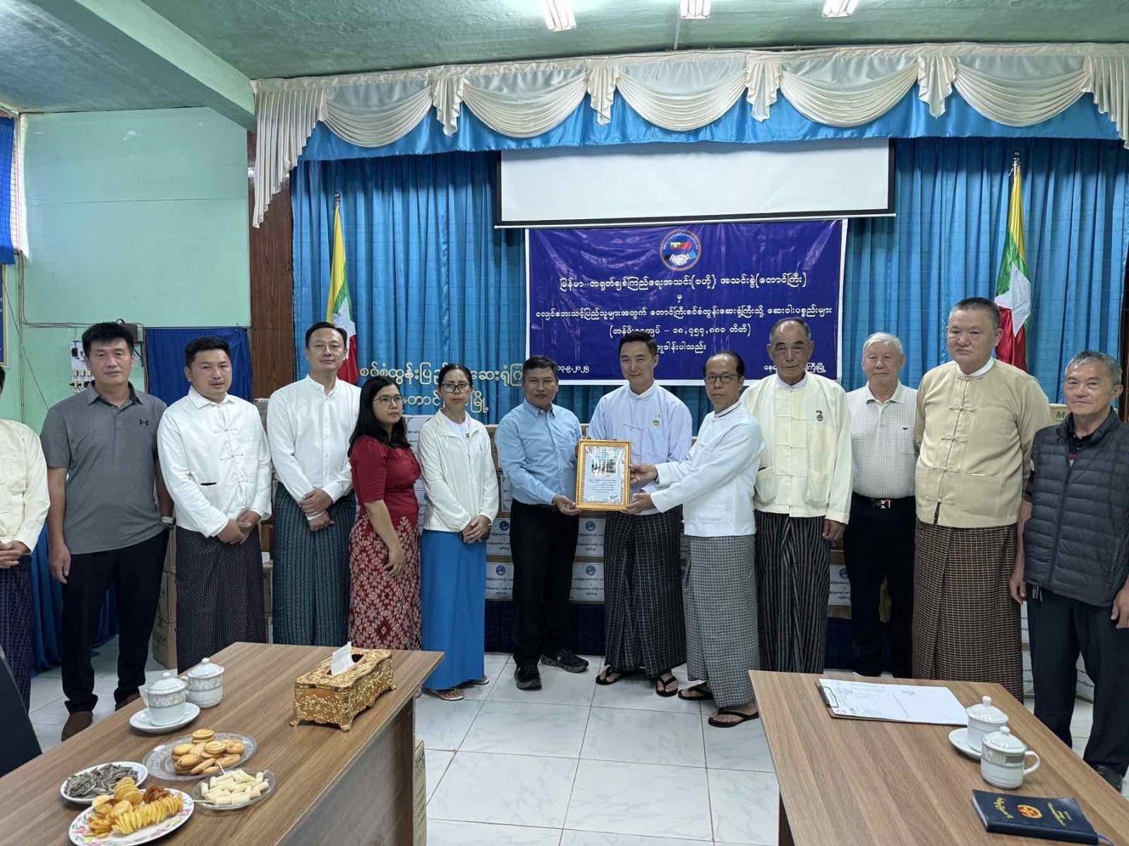 At the ceremony, Taunggyi branch chairman U Han Lin Aung, secretary U Tun Lwin, and executive members hand­ed over medicines and supplies worth about K18.8 million. Med­ical superintendent Dr Yan Naing Maung accepted the donations, expressed gratitude, and presented a certificate of honour in return.