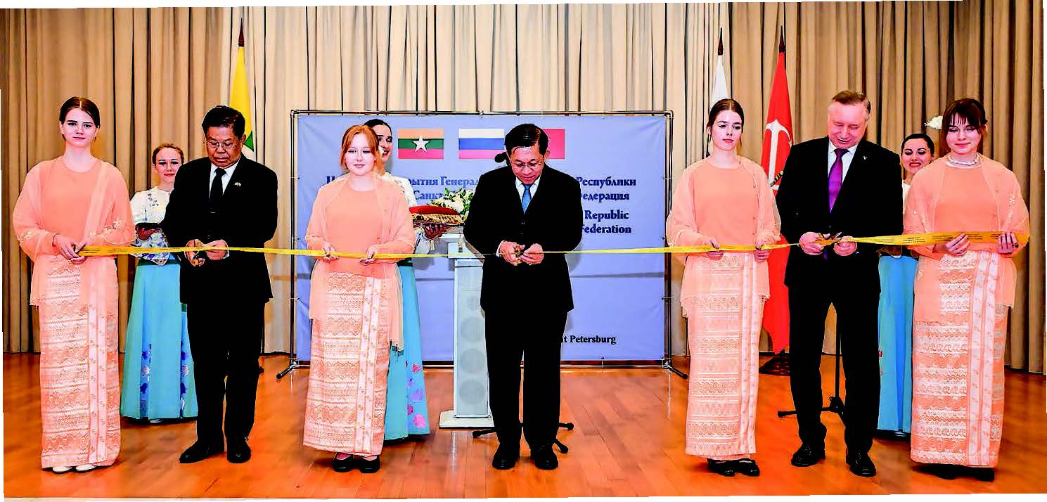 The opening ceremony of the Myanmar Consulate-General took place at the K-2 Government Guesthouse in Saint Petersburg on the evening of 5 March local time with the attendance of State Administration Council Chairman Prime Minister Senior General Min Aung Hlaing.