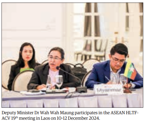 THE Myanmar delegation led by Dr Wah Wah Maung, Eminent Person (EP) of Myanmar for the High-Level Task Force on ASEAN Community’s Post-2025 Vision and Deputy Minister for Investment and Foreign Economic Relations, attended the 19th meeting of the High-Level Task Force on ASEAN Community’s Post-2025 Vision (17th HLTF-ACV), which was held in Vientiane, Lao PDR, on 10-12 December 2024, accompanied by officials from the ASEAN Affairs Department of the Ministry of Foreign Affairs. Drafting sessions of the high-level representatives were also held on the sideline of the 19th meeting of HLTF-ACV and concluded the fifth reading with 98 per cent completion of the draft ASEAN Political and Security Community (APSC) Strategic Plan.