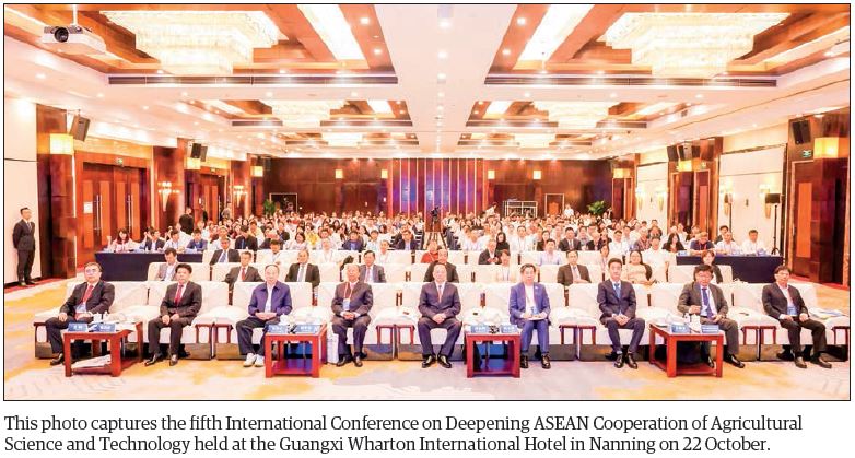 CONSUL-GENERAL of the Republic of the Union of Myanmar in Nanning, Daw Khine Su Lin, along with a nine-member delegation from Agricultural Research Department of the Ministry of Agriculture, Livestock and Irrigation and the Institute of Agriculture in the Mandalay Region, attended the fifth International Conference on Deepening ASEAN Cooperation in Agricultural Science and Technology, held at the Guangxi Wharton International Hotel in Nanning on 22 October.