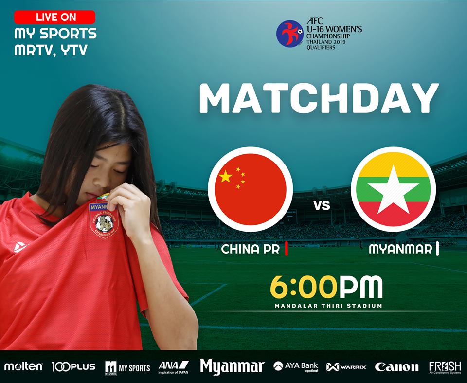Myanmar team is pooled in the (B) together with China, Bangladesh and the Philippines. Myanmar team will play the opening match against China at 6 p.m. on 27 February, Bangladesh at 6 p.m. on 1 March and the Philippines at 6 p.m. on 3 March. Myanmar will be playing an opening match against China at 6 p.m. today. All matches of the competition will be broadcast live on My Sports, MRTV and YTV channels.