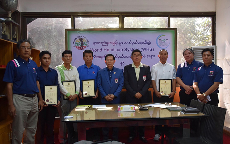 A ceremony for signing the Memorandum of Understanding (MoU) for the project and handing over of World Handicap System (WHS) certificates was held on 19 December at the Yangon Golf Club. Officials and concerned persons from the Myanmar Golf Federation and Myanmar Hero’s Golf Management Co. Ltd attended the ceremony.