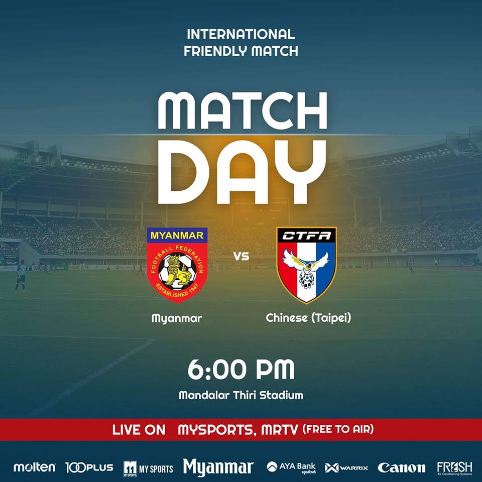 Myanmar national men’s football team will play an international friendly match against Chinese Taipei today, according to a source from the Myanmar Football Federation (MFF).
