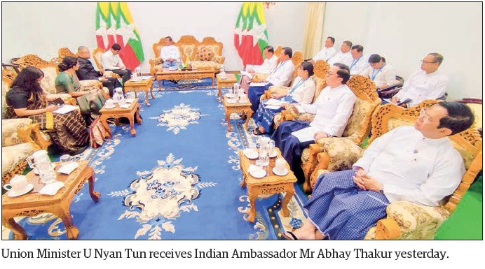 UNION Minister for Electric Power U Nyun Tun received Indian Ambassador Mr Abhay Thakur at the Ministry of Electric Power in Nay Pyi Taw yesterday.