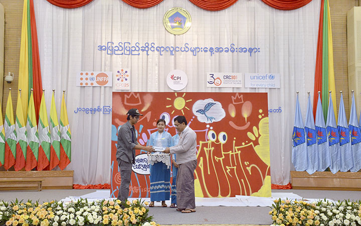 The Union Minister highlighted on the education reform and the interrelations among development, learning and teaching in child development programme that is very fundamental for adult learning processes. He also emphasized that the merger of child development programme and the early child development measures will need the contribution of parents and teachers. The Union Minster also affirmed that the government has believed all the young people should enjoy equal and fair rights regardless of different places where they have grown up. In his conclusion remark, Dr Win Myat Aye invited all the young people, quoting the theme of International Youth Day 2019, “Transforming education”, to contribute their efforts together with the government.