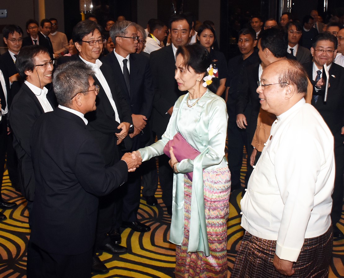 The State Counsellor also welcomed investors from Japan and the US, saying that the Thilawa Special Economic Zone near Yangon is pulsating with activity as some 108 companies, over half of which are Japanese, have invested in the Thilawa SEZ; the Suzuki Motor Company is in the lead producing a range of passenger cars and small trucks. The Japanese probiotic drink manufacturer Yakult also commenced operations in Thilawa earlier this month.