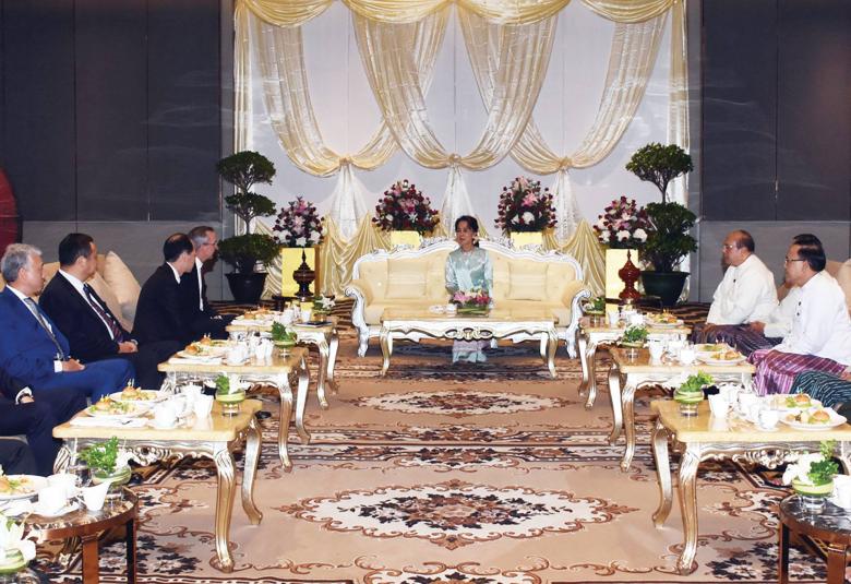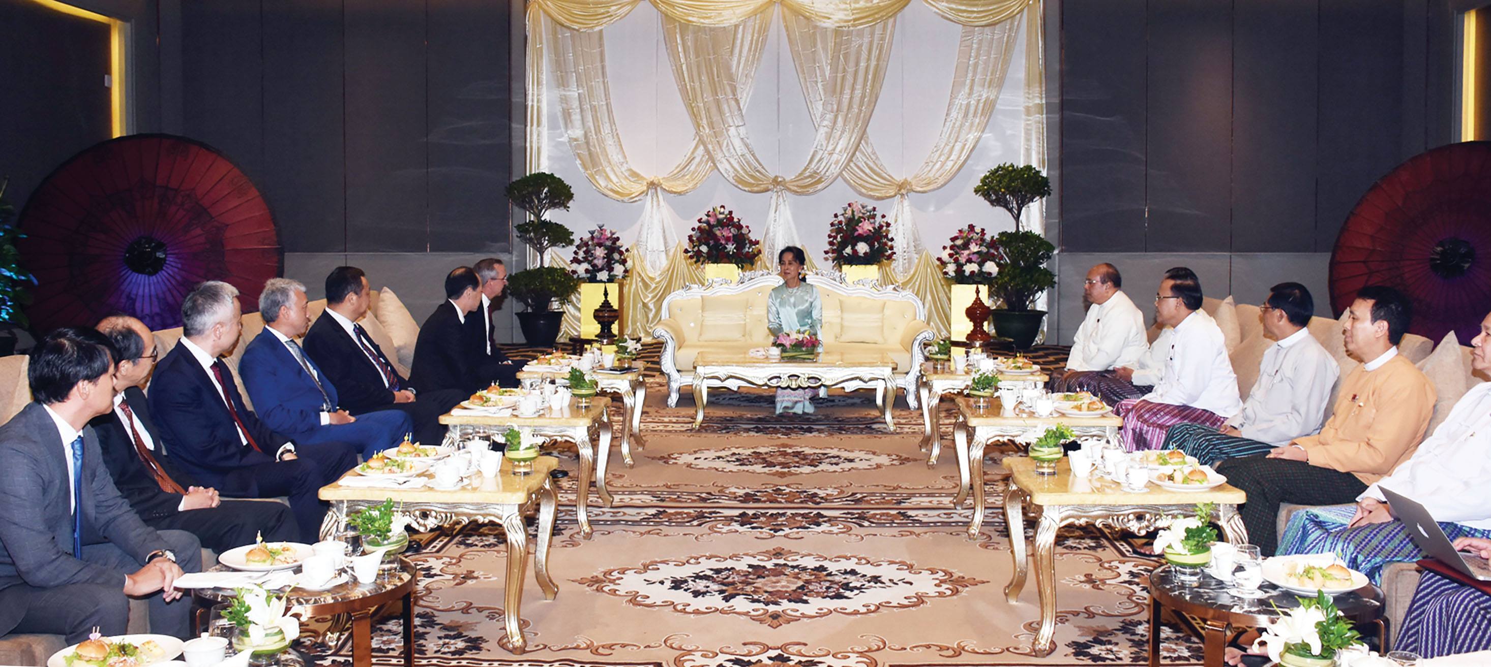 The State Counsellor then met with Japanese and the US ambassadors, representatives of the respective embassies, UMFCCI, JICA, JETRO and the businesspersons of these two countries to ask about their experiences in doing business in Myanmar.