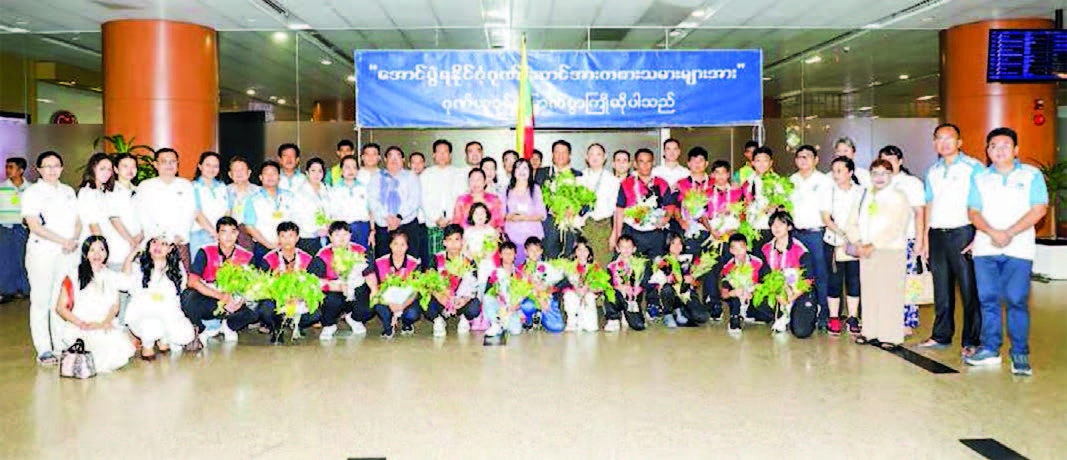 Team Myanmar was warmly wel­comed back at Yangon International Airport by officials, students and ath­letes from the Institute of Sports and Physical Education (Yangon). Officials also awarded a K1 million cash prize in honour of the team’s achievement.