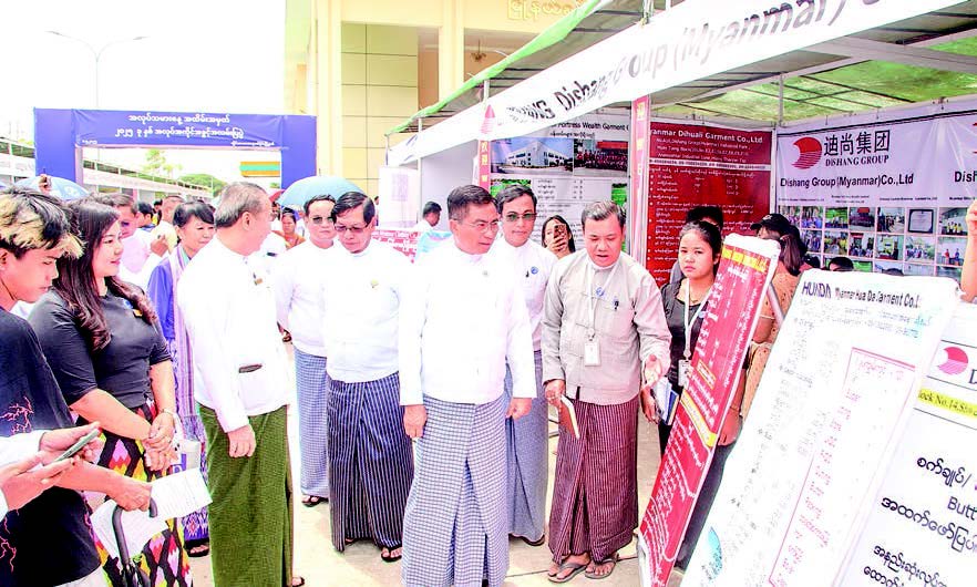 The Union minister, the Yangon Region chief minister and relevant officials then cut the ceremonial ribbon to inaugurate the Job Fair marking International Workers’ Day, and observed the staff of the ministry who issue labour cards, job applicants, participants from factories, workshops and companies.