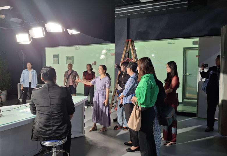 Media delegation, including officials from the Ministry of Information, Myanmar, visits Dehong Media Center on the morning of 22 July.