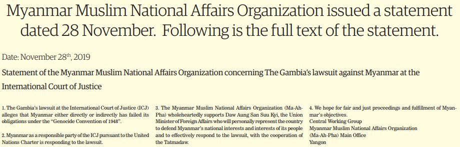 Statement of the Myanmar Muslim National Affairs Organization concerning The Gambia’s lawsuit against Myanmar at the International Court of Justice