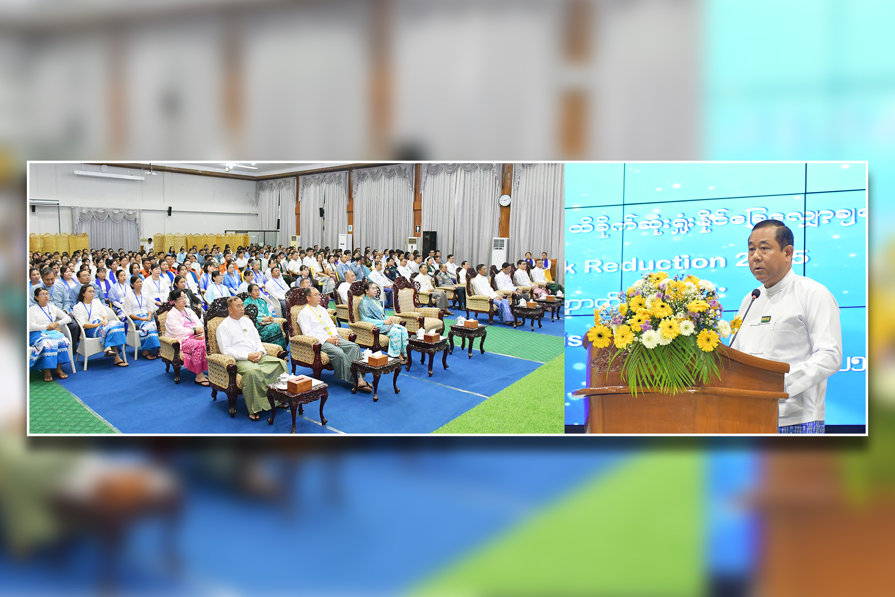 Chairman of the National Disaster Management Committee, Union Minister for Home Affairs, Lt-Gen Tun Tun Naung, attended the event and made a speech, highlighting the theme of the event “Fund Resilience, Not Disasters”