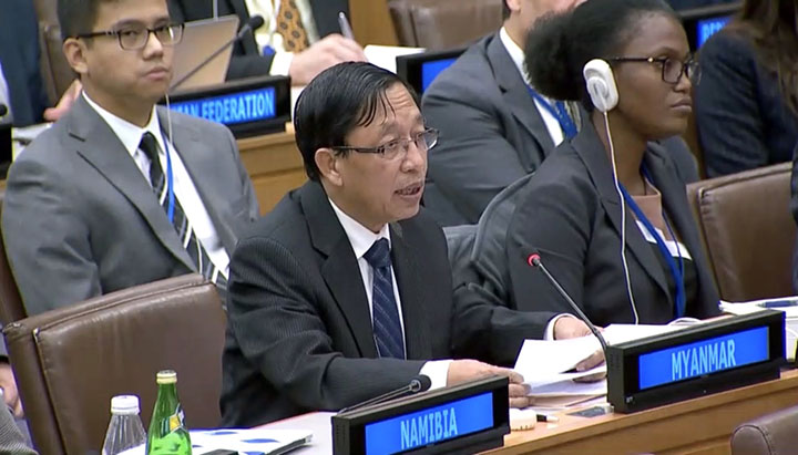 The Permanent Representative of Myanmar to the United Nations reaffirmed Myanmar’s commitment to address the Rakhine State issues with goodwill, in cooperation with the Special Envoy as well as friends near and far during the introductory session of the Report of the Secretary-General on Myanmar.