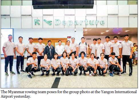 THE Myanmar rowing team, led by Myanmar Rowing Federation Chairman U Thaung Htike Min, departed yesterday morning from Yangon International Airport to compete in the 2024 ICF Dragon Boat World Cup and the 2024 ICF Dragon Boat World Championships. These events will be held from 24 October to 3 November in Yichang, China, and Puerto Princesa, the Philippines.