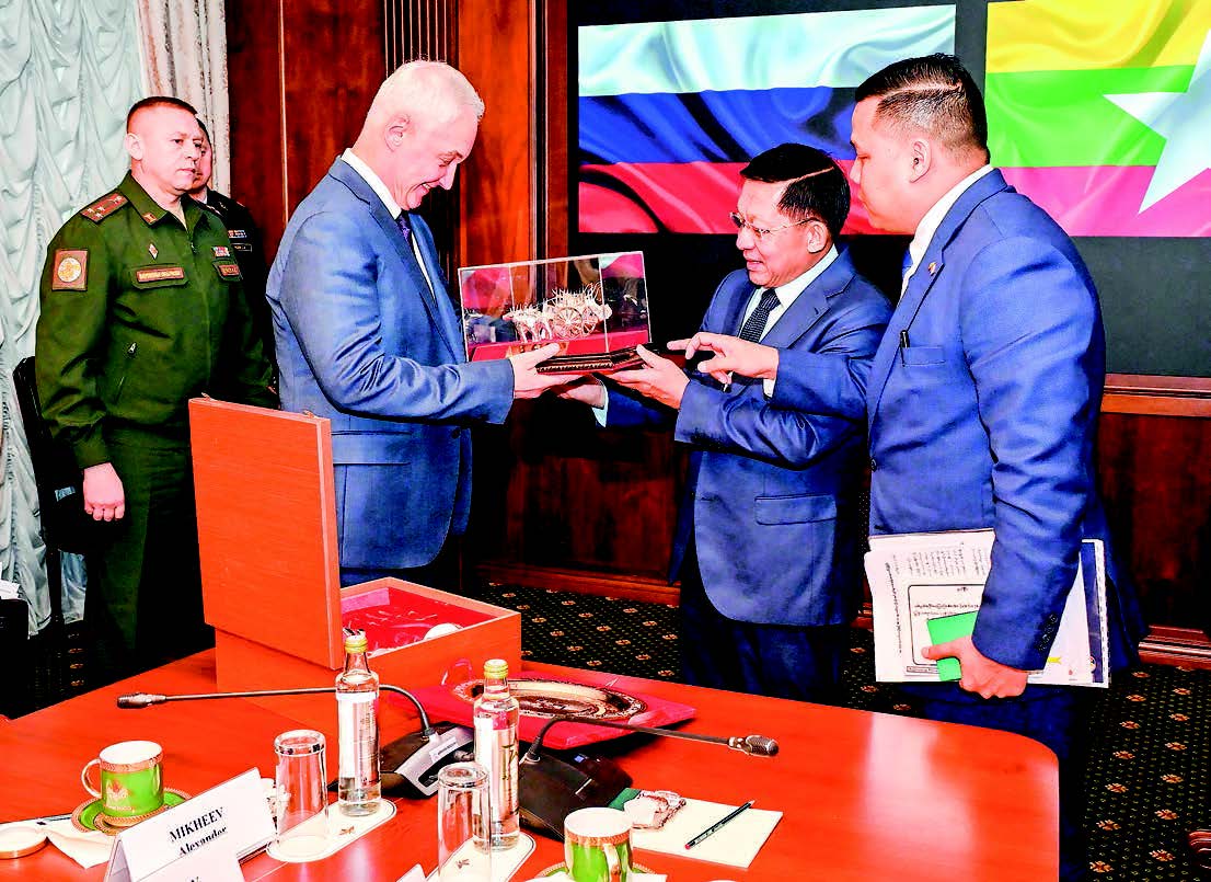Chairman of the State Administration Council Prime Minister Senior General Min Aung Hlaing, currently in Moscow of the Russian Federation, held a meeting with Minister of Defence of the Russian Federation Mr Andrei Removich at the meeting hall of the Ministry of Defence of the Russian Federation yesterday.