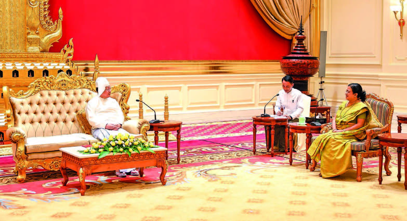 Ambassador-designate of Sri Lanka to Myanmar Mrs Ponnamperuma Arachige Prabashini Ponnamperuma presented her Credentials to State Administration Council Chairman Prime Minister Sen­ior General Min Aung Hlaing at the parlour of the Credentials Hall of the Office of the Chair­man of the State Administra­tion Council in Nay Pyi Taw yesterday morning.