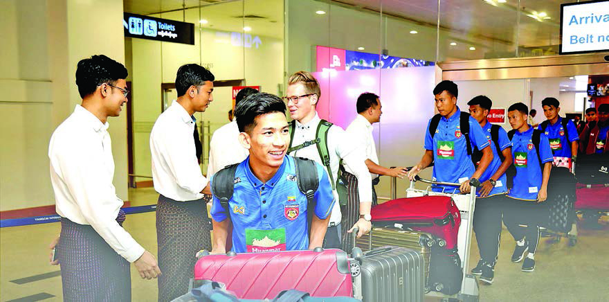 Team Myanmar, led by head coach U Soe Myat Min, were welcomed by officials from the Myanmar Football Federation, led by the general-secretary of the MFF, U Ko Ko Thein.