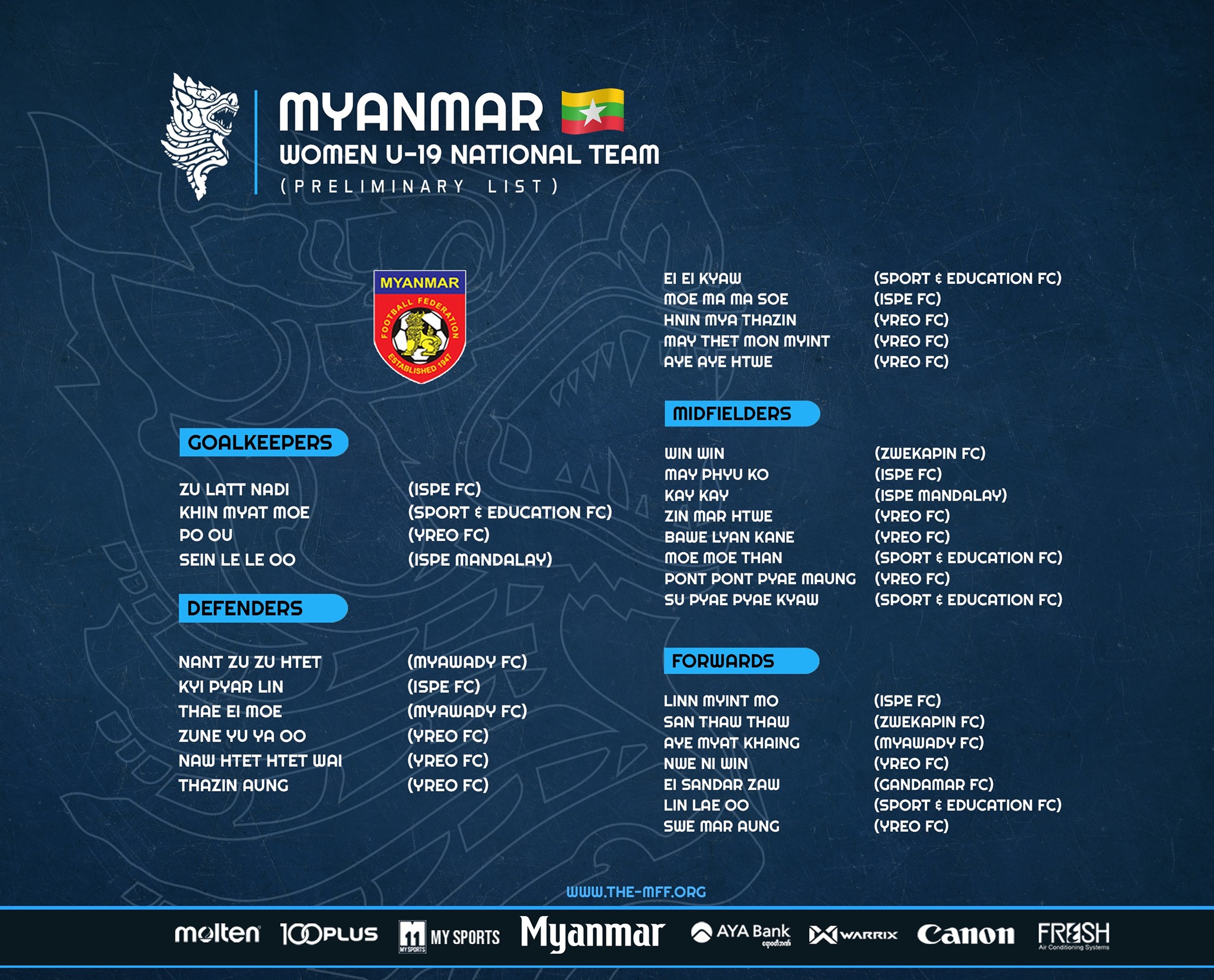 Myanmar U-19 women’s football team consisting of 30 tentative footballers has undergone training since 1 July, according to the Myanmar Football Federation.