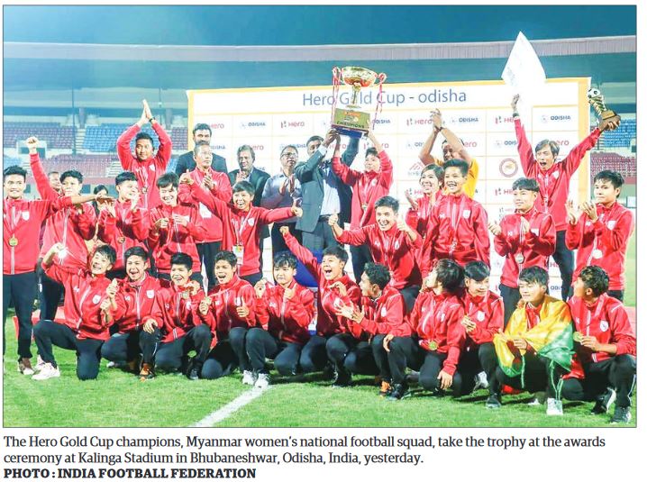 The Myanmar national wom-en’s football team won the Hero Gold Cup 2019 by beating the Nepal team 3-1 in the final of the tourney at Kalinga Stadium in Bhubaneshwar, India, yesterday night.