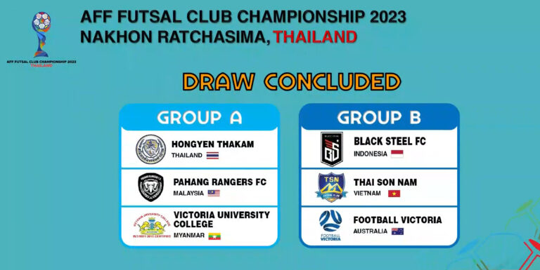 The drawing-lots ceremony for the AFF Futsal Club Championship 2023 was held this week in Thailand, which will host the tournament, and Myanmar’s Victoria University College (VUC) Futsal Club was placed in Group A.