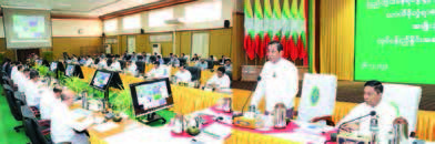 The meeting was attended by Chairman Union Minister Lt-Gen Tun Tun Naung, Vice-Chairman Union Minister Dr Soe Win, committee members, deputy ministers, permanent secretaries, directors-general, officials, and relevant regional and state government members. The state and regional ministers for Security and Border Affairs and the state and regional minister of Social Affairs participated online.