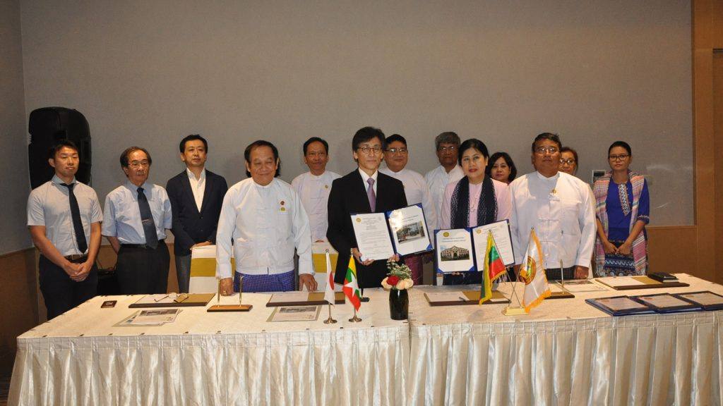 Niigata University of Japan and National Health Laboratory signed MoU in Yangon yesterday in the presence of Union Minister for Health and Sports Dr Myint Htwe and officials.
