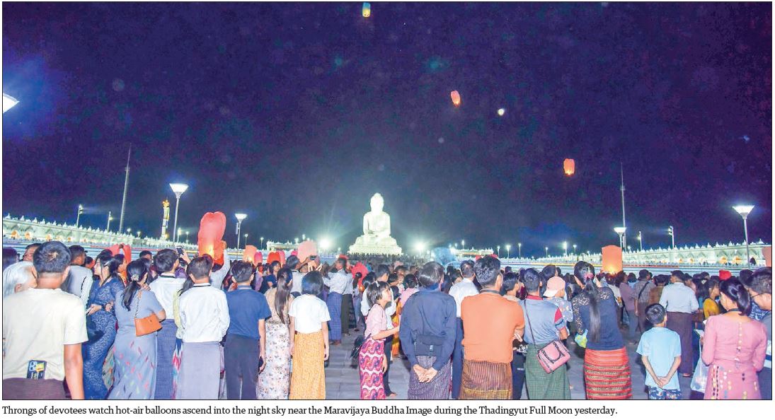 ON the occasion of the Thadingyut Full Moon Day (Abhidhamma Day) yesterday, Buddhist devotees across the country engaged in various religious activities at pagodas and stupas. Offerings of alms, flowers, water, and oil lamps were made in reverence, accompanied by the practice of Sila (precepts) and meditation.