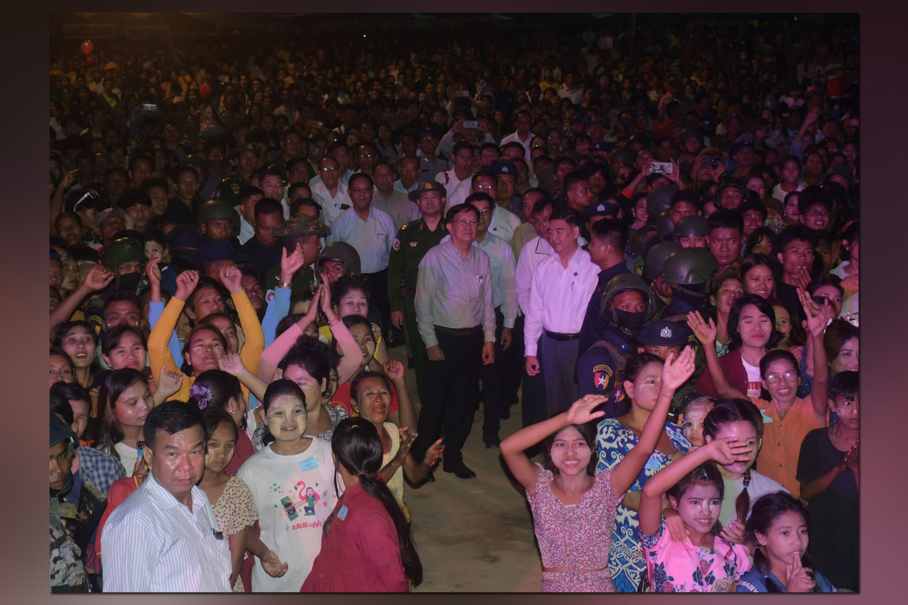 The Executive Chief and party then visited the venue of the 51st Anniversary of Rakhine State Day celebrations to observe the music performances and the offering of charity feast, interacting warmly with local residents and offering words of encouragement.