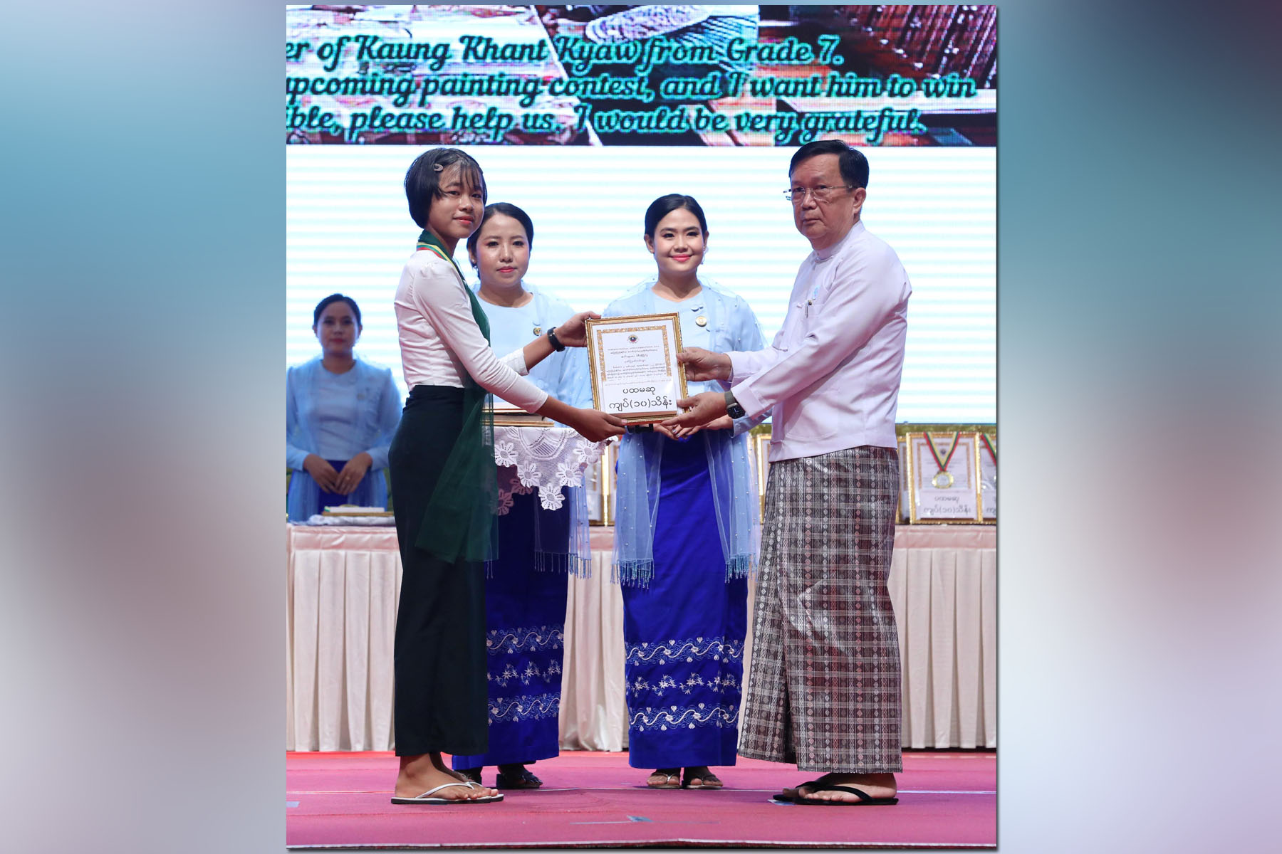 Chief Justice of the Union U Tha Htay also presented medals, certifi­cates of honour, and cash prizes to the first, second, and third-place winners in the anti-corruption awareness poster competition for each age group, while the Commission Chairman presented medals, certificates of honour, and cash prizes to the first, second, and third-place winners in the anti-corruption awareness painting competition for each age group.