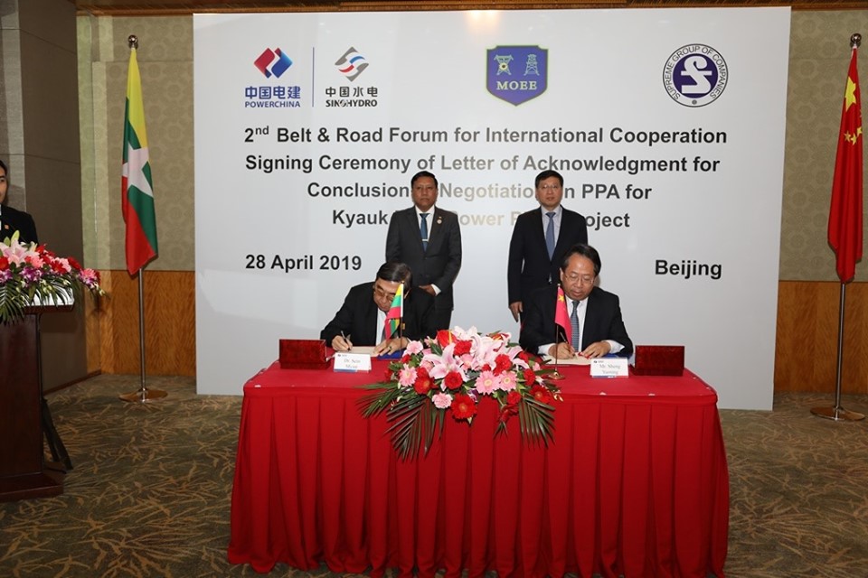 MINISTER of Electricity and Energy U Win Khaing attended a signing ceremony of Letter of Acknowledgement for Conclusion of Negotiation in Power Purchase Agreement-PPA for Kyaukphyu Power Plant project on 28th April.
