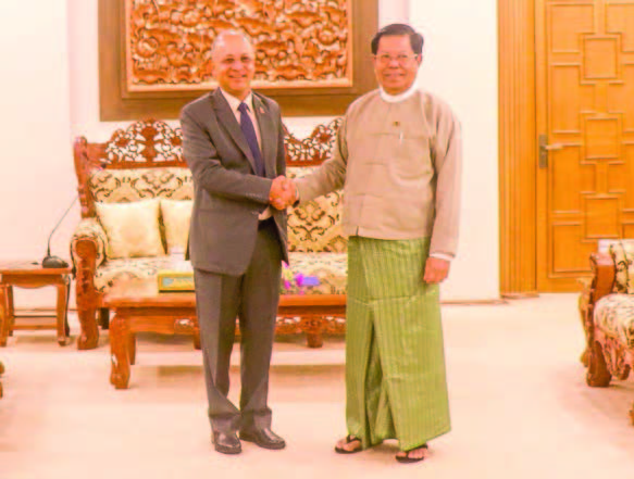Deputy Prime Minister and Union Minister for Foreign Affairs of the Republic of the Union of Myanmar U Than Swe received Mr Harishchandra Ghimire, Ambassador Extraor­dinary and Plenipotentiary of Nepal to the Republic of the Union of Myanmar, at the Min­istry of Foreign Affairs in Nay Pyi Taw yesterday.