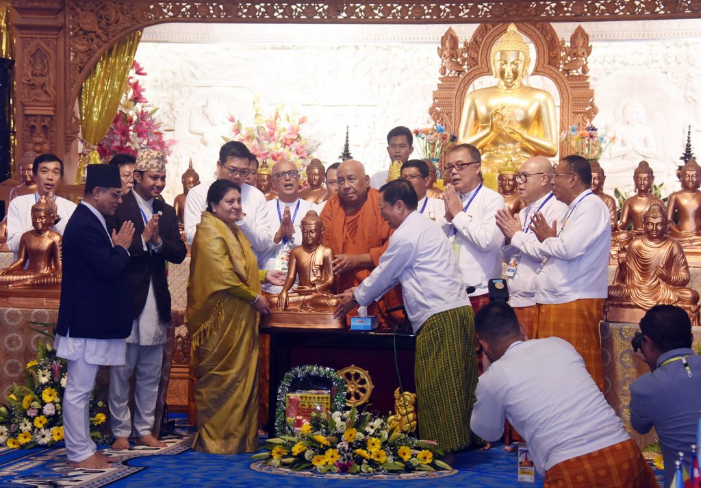 Yesterday morning a Nepali delegation led by President of the Federal Democratic Republic of Nepal Mrs Bidya Devi Bhandari who was on a State Visit to Myanmar attended a donation ceremony of 30 Buddha images of various mudras that were to be donated to the Lumbini museum in Nepal. The Nepali delegation was accompanied by Union Minister for Religious Affairs and Culture Thura U Aung Ko and officials. The donation ceremony was held at the Sitagu International Buddhist Academy in Pinlon Ward, Dagon Myothit (East), Yangon and the Buddha images were donated by the Sitagu Sayadaw Ashin Nyanissara.