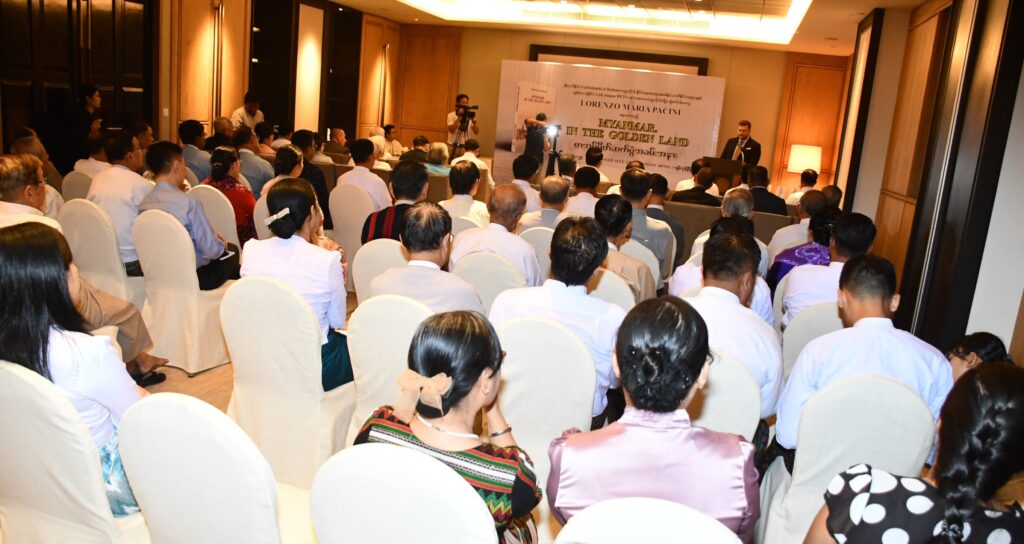 The book launch ceremony of Myanmar in the Golden Land, written by Mr Lorenzo Maria Pacini, an Italian expert in political philosophy and geopolitics, and the MoU signing ceremony between the Myanmar Narrative Think Tank and Anteo Edizioni Publishing House and the Instituto De Alti Studi Sulla Multipolarità IASM of Italy took place at the Eravati Sule Grand Yangon Hotel in Yangon yesterday.