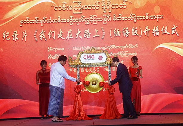 Afterwards, Union Minister Dr Pe Myint and SCIOC Minister Mr Xu Lin struck the ceremonial gong and announced broadcast of ‘Marching on the Main Road’ had begun. They then posed for a group documentary photo.