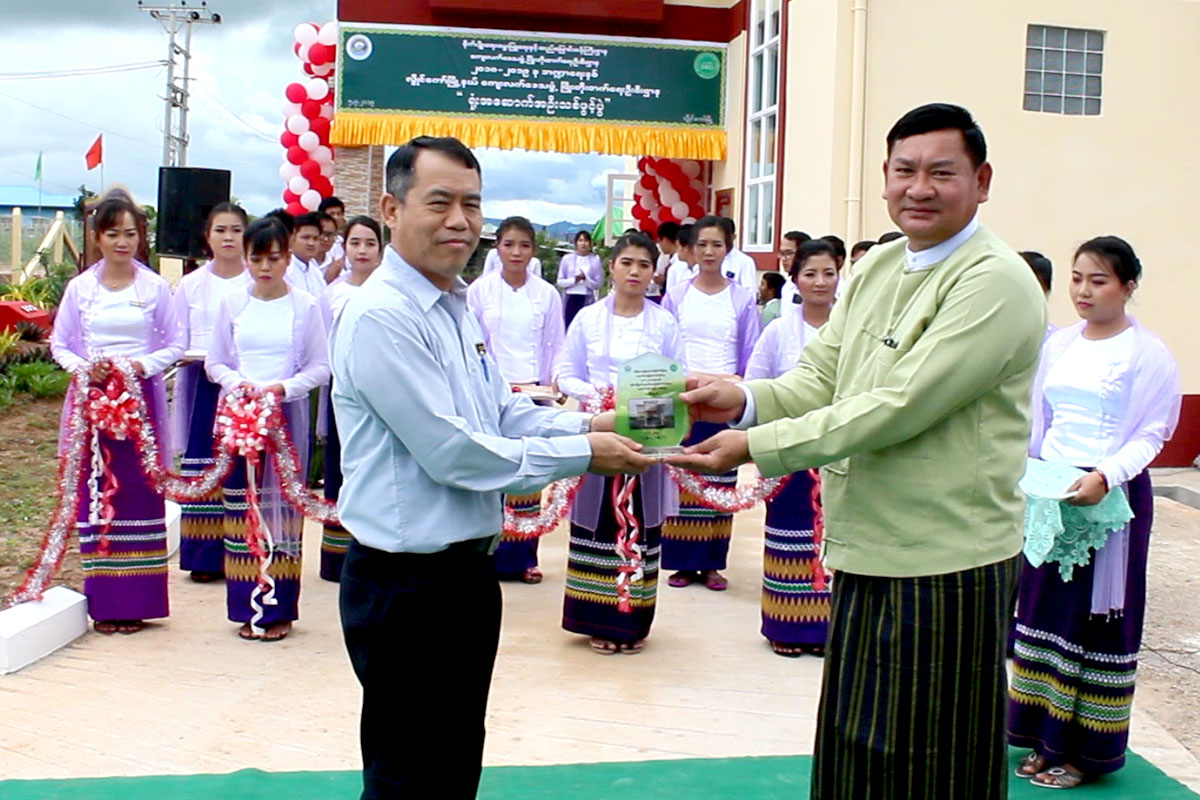 Then Managing Director from the Construction Company U Kyi Soe handed over proper documents relating to the building over to an official from Loikaw Township DRD. Next, the officials formally opened the newly constructed building and sprinkled the scented water on stone inscription.