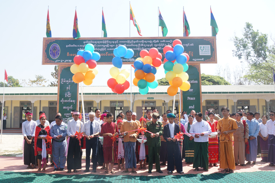 Under the guidance of Ministry of Border Affairs and Kayah State Government, an opening ceremony of new school building for No. 2 Basic Education High School (branch) of Ngwetaung village, donated by Department of Progress of Border Areas and National Races, Nippon Foundation and local donors was convened at the school, Ngwetaung village, Demoso Township, Kayah State this morning.
