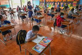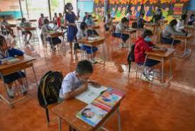 One mother accompanying her daughter said that although children can learn online, it was slower than learning in classrooms.