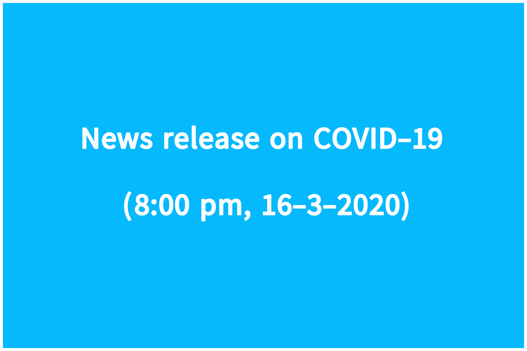 - On 16-3-2020, two Myanmar nationals returning from Germany and one returning from Thailand were screened at Yangon International Airport. Although they do not have high fever, display symptoms of COVID-19, or been in close contact with people with confirmed cases, they have history of traveling to nations with high infection rate and are currently under hospital quarantine.