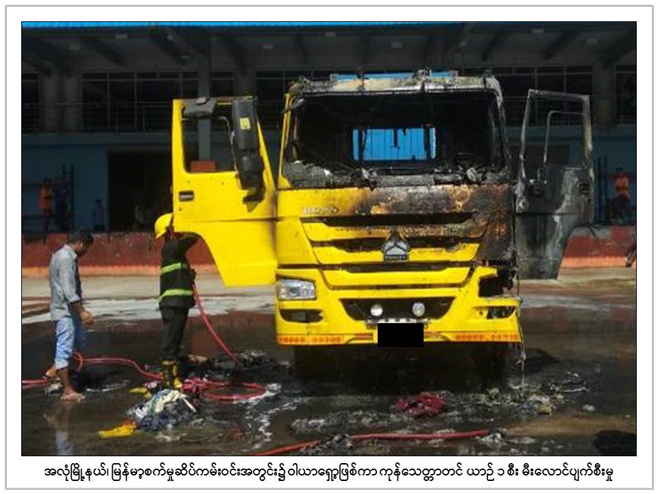 A container truck caught fire in the compound of Myanmar’s industrial port in Ahlon Township, Yangon Region on 30 September, according to a source from the Ministry of Home Affairs.