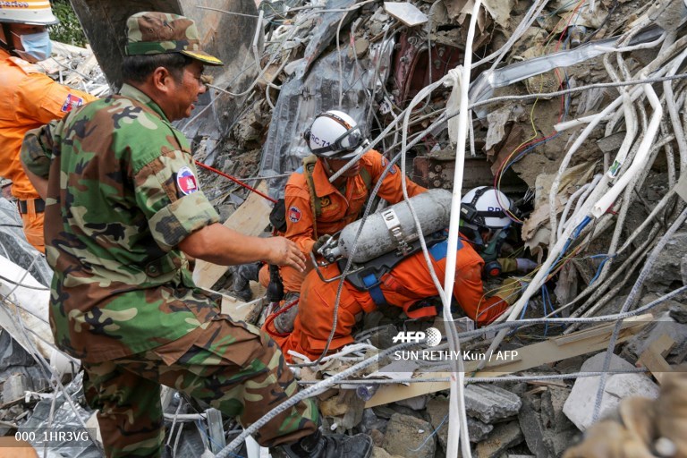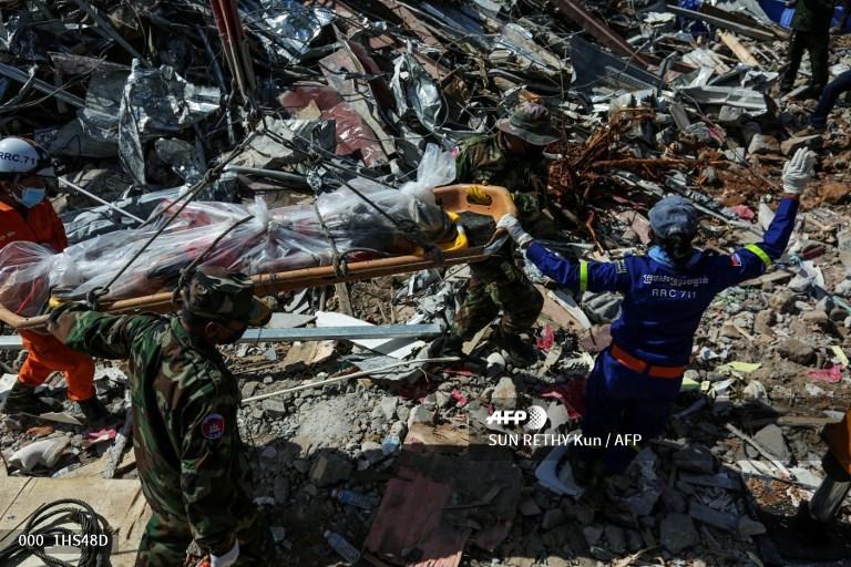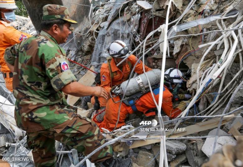 Workers clawed back the rubble overnight as a grim-faced Cambodian premier Hun Sen visited the scene of the collapse in Sihanoukville, a beach town undergoing a Chinese investment bonanza.