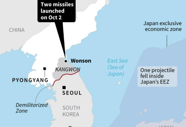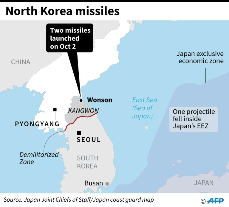 One of the projectiles fell into waters within Japan's exclusive economic zone -- a 200-kilometre band around Japanese territory -- Tokyo said.