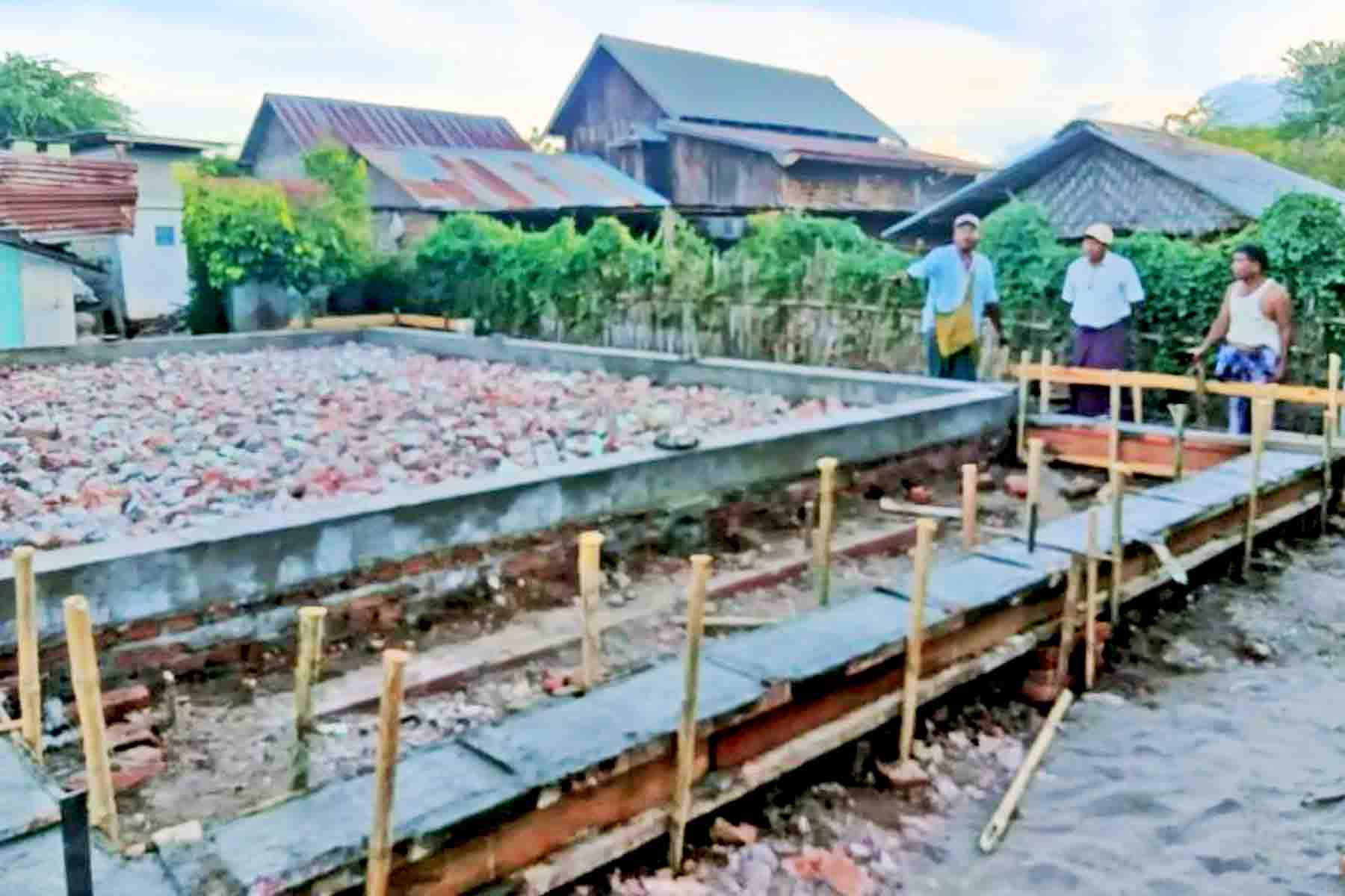 Led by U Hla Htay Maung, Staff Officer of the Township Rural Development Department, engineering staff and members of the village project committee inspected the hall, which measures 60 feet in length, 36 feet in width, and 12 feet in height.