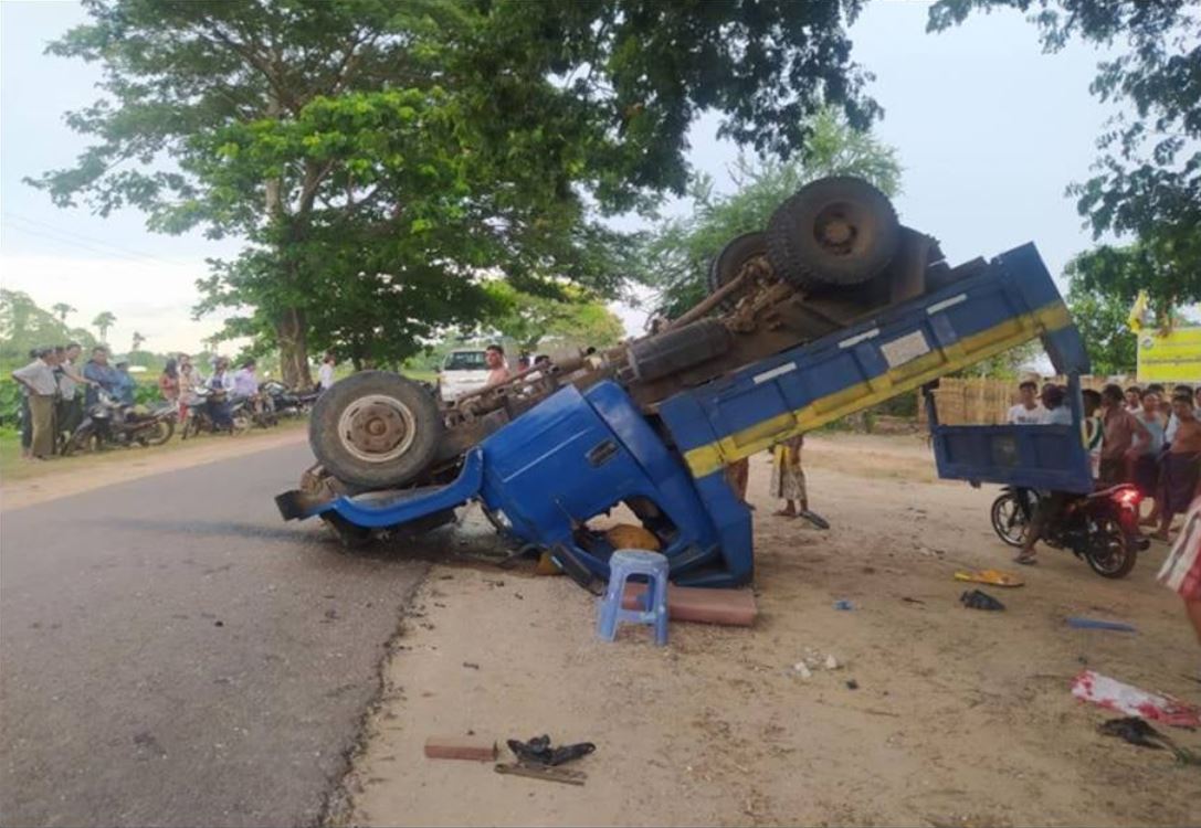 The fatal accident occurred near Gwaygon Village on an inter-village road in KhinU Township at about 3 p.m. on August 22. A mini-truck with 28 people aboard flipped over after the driver lost control of the vehicle. A 30-year old woman named Ma Thinzar Lwin died on the spot and 27 others sustained minor injuries in the incident