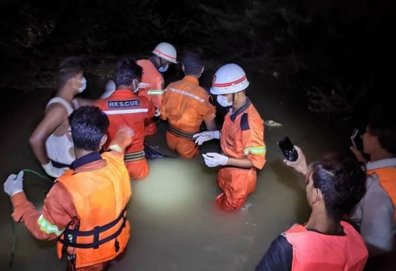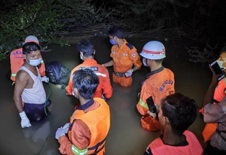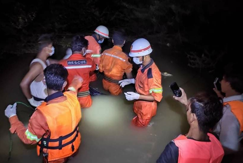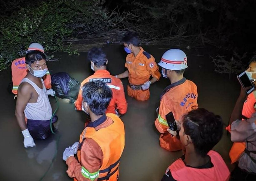 Upon receiving the information, firemen, volunteers from local social organizations, and policemen rushed to the scene where the body was found. Family members of the victim confirmed that the dead woman is Ma Kaung Myat Thu who went missing after the tragic accident.