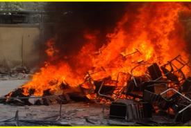 To prevent future reuse of the materials in the online scams and gambling activities in KK Park and Shwe Kokko areas, the seized materials were incinerated systematically.