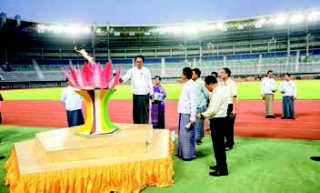 Union Minister for Informa­tion U Maung Maung Ohn and Union Minister for Sports and Youth Affairs U Min Thein Zan, accompanied by Deputy Minis­ters U Ye Tint, Daw Nu Mra Zan, U Htein Lin, U Zin Min Htet, and relevant departmental officials inspected the preparations for opening and closing events of the Fifth National Sports Festival at Wunna Theikdi Stadium in Nay Pyi Taw yesterday.