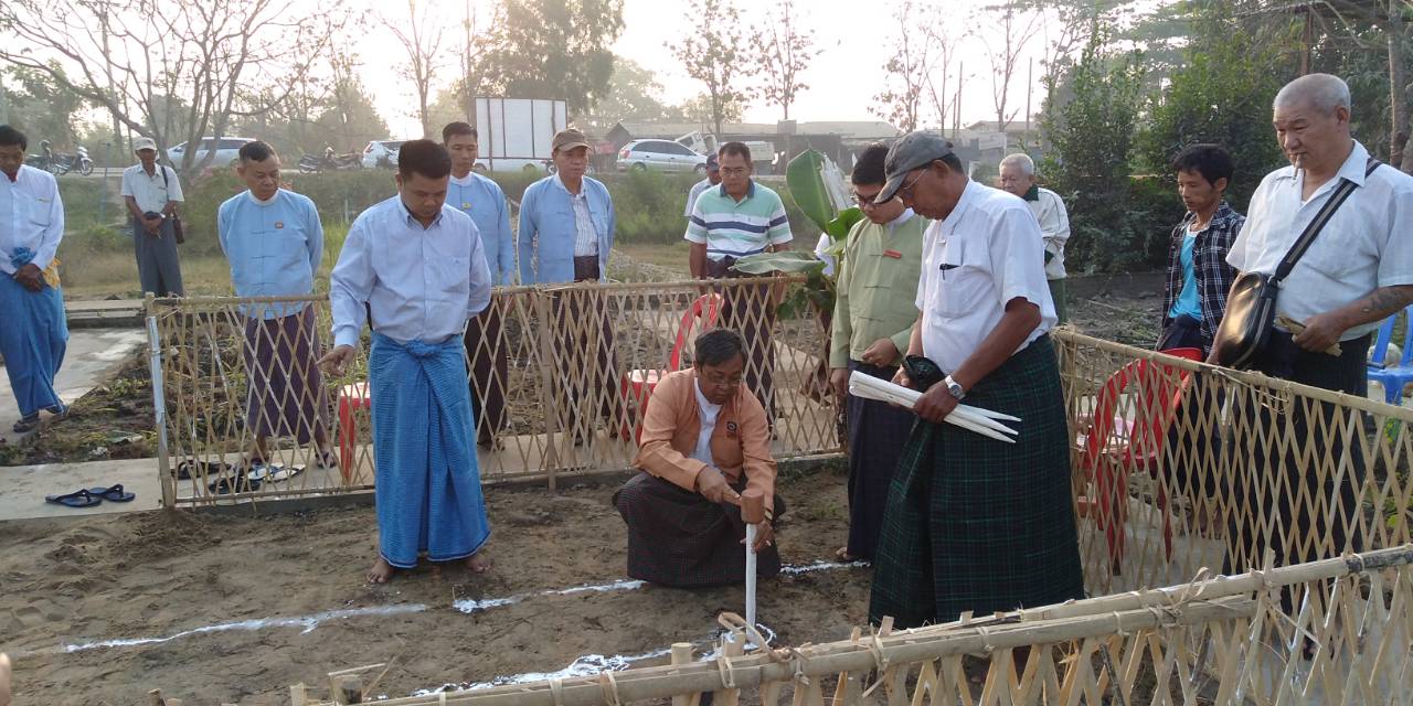 At the ceremony, Regional Lawmaker U Htay Lin, departmental officials and town elders drove the stakes at designated places in the construction site and sprinkled scented water on it. The statue of Bogyoke Aung San will be cast from brass at a cost of Ks. 20 million in which Ks. 15 million was donated by Kyel Ni family.