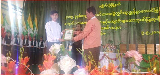 This was followed by presentation of awards and certificates of honor to outstanding matriculation students who passed with flying colors, and staff officer of the township Education officer’s Office Daw Khin Myint Wai who supervised the students to pass the exam with high marks in 2018-2019 Academic year.—Win Maung (Kyaikto)