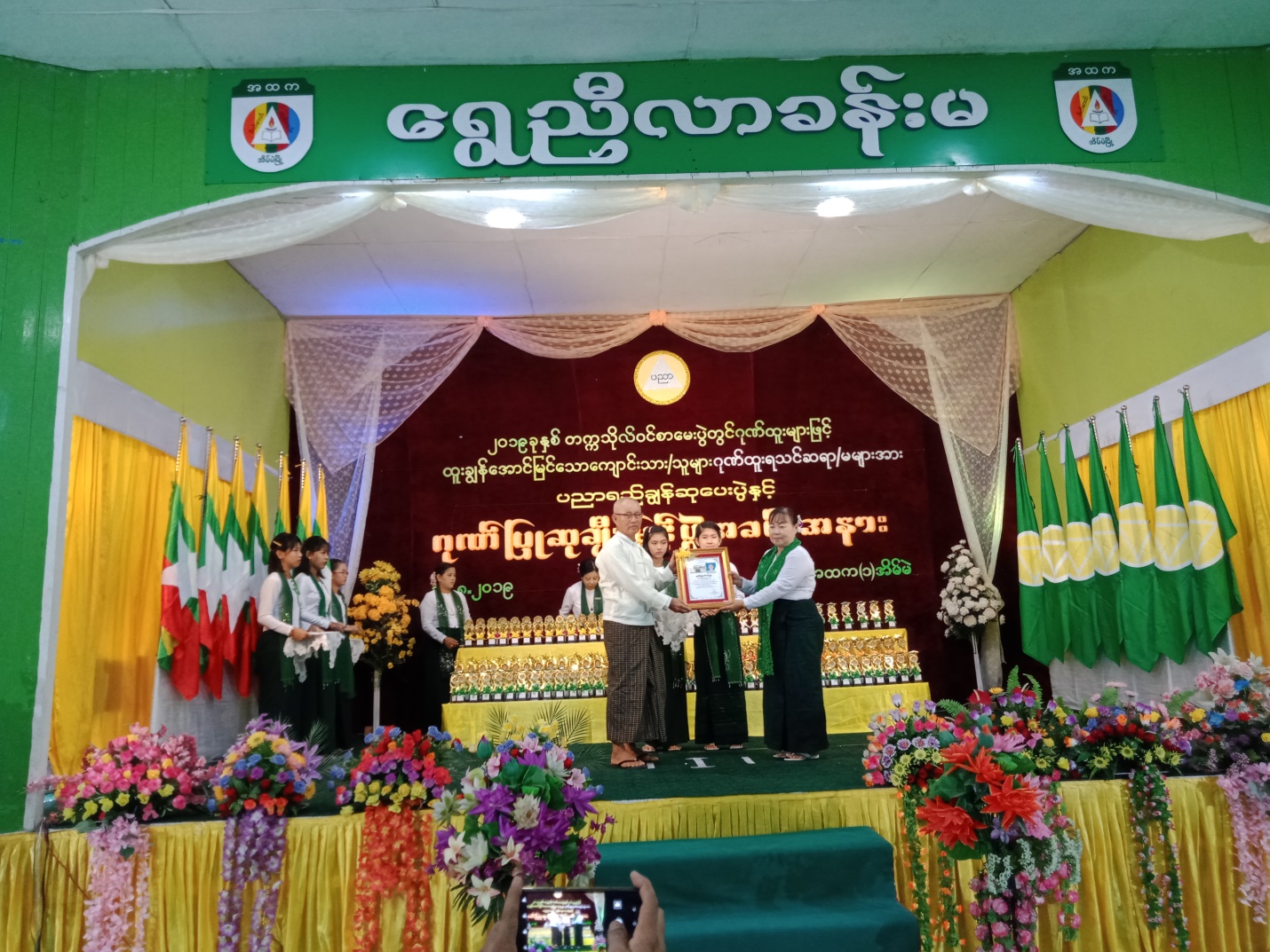 A ceremony to honor outstanding students who passed 2019 matriculation examination with flying color and teachers who taught the students to pass matriculation examination with distinctions was held at Shwenyila hall of B.E.H.S-1 in the town of Einme, Myaungmya District, Ayeyawady Region yesterday.