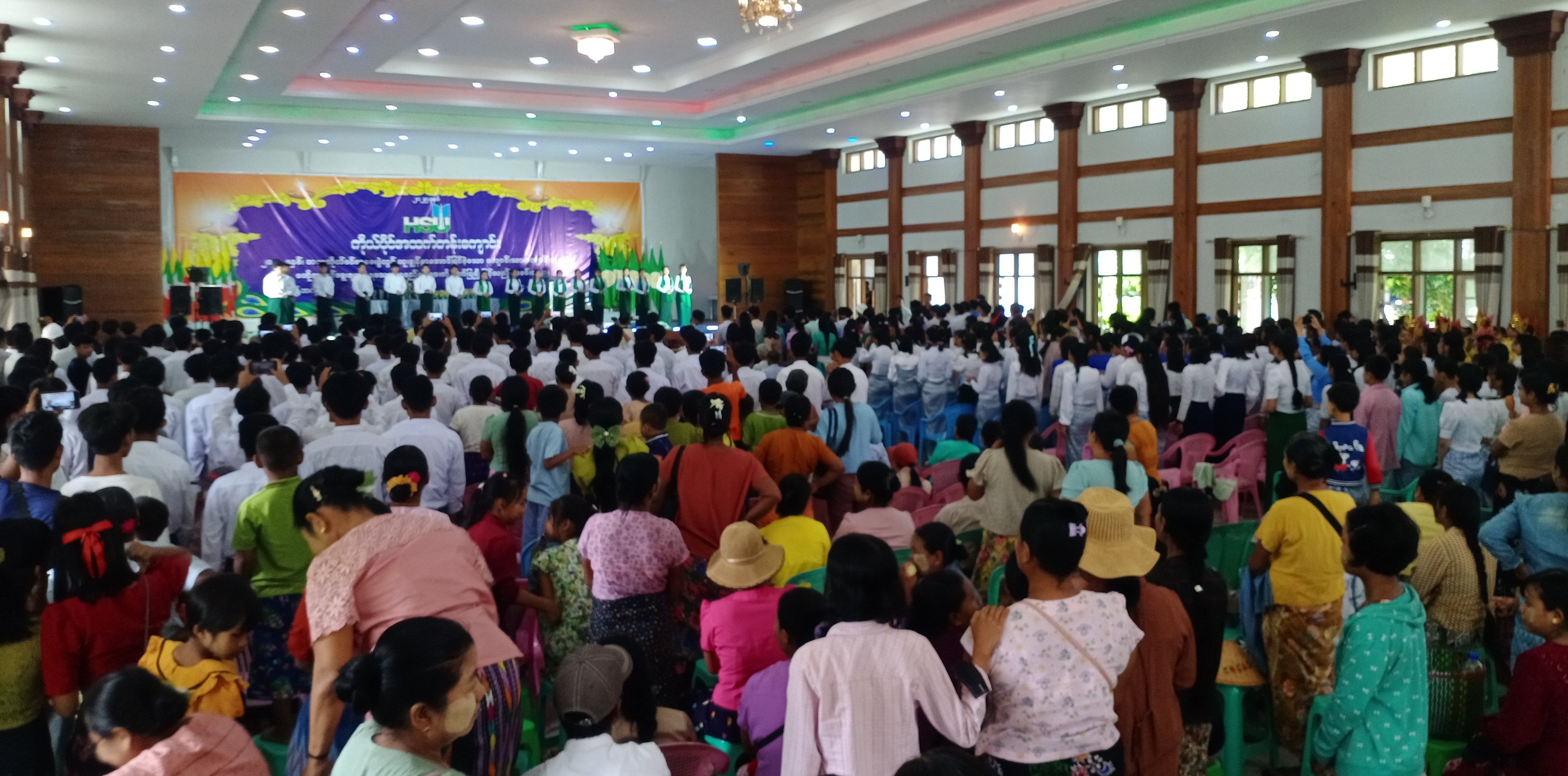 The ceremony began with students singing the Myanmar School Song, followed by an opening speech from Township Education Officer Daw Aye Aye Soe. Headmaster U Han Lin Aung then spoke about the purpose of the event and the school’s exam performance.